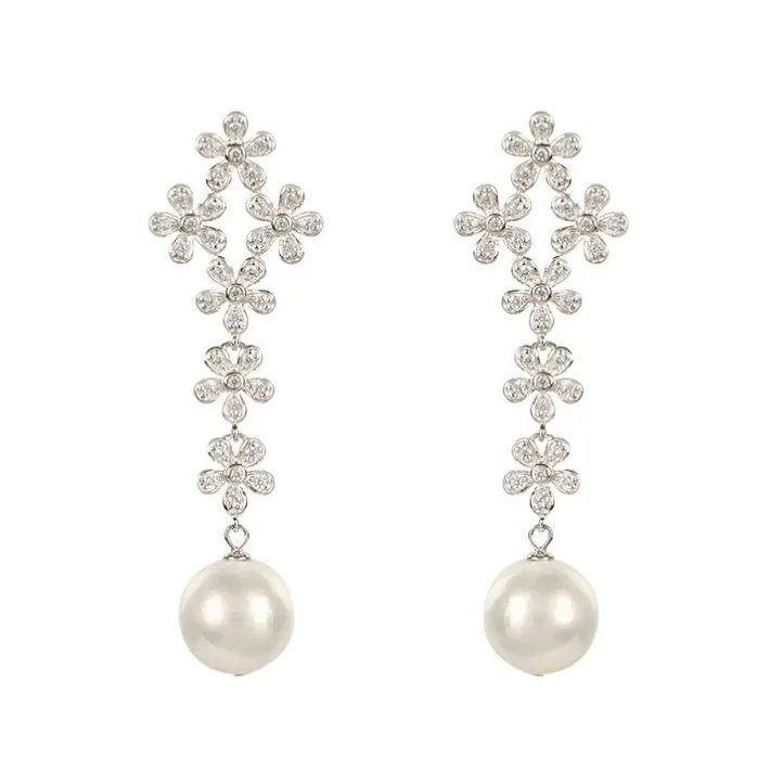 These Elegant Earrings Have Intricate Crystal, Floral Detail And Are Beautifully Finished With A Freshwater Pearl Drop.