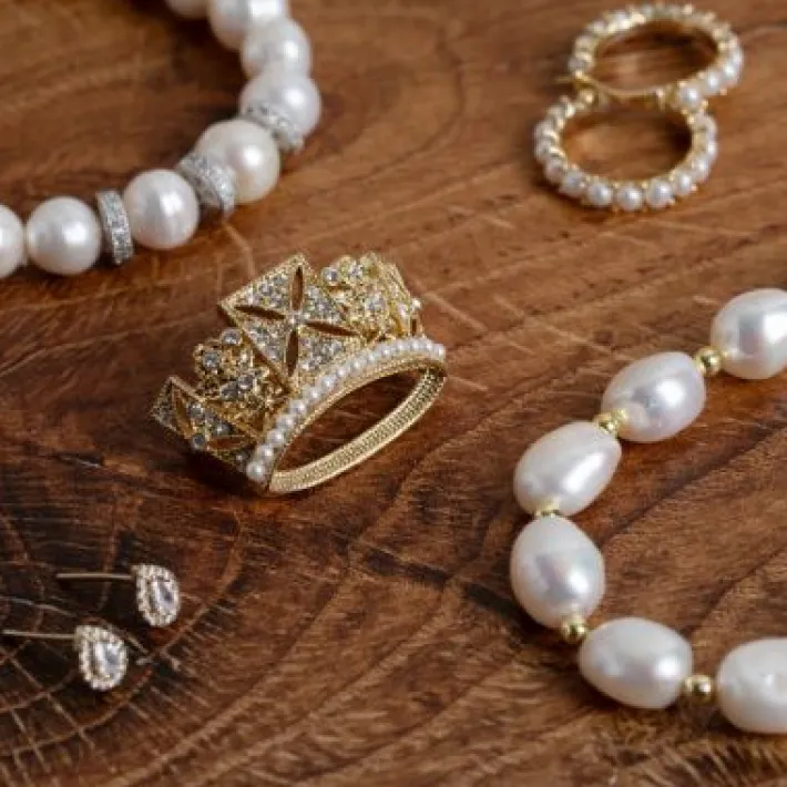 This Classic Gold-Plated Brooch Is Inspired By The Diamond Diadem Created For George Iv. It Is Set With The Highest Quality Cut Glass Crystal And Costume Pearls And Is Plated In Gold.