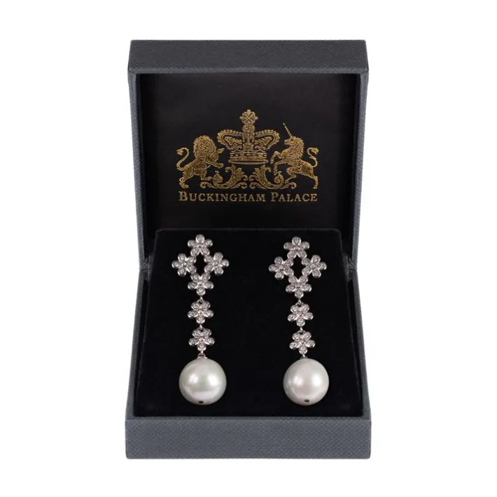 These Elegant Earrings Have Intricate Crystal, Floral Detail And Are Beautifully Finished With A Freshwater Pearl Drop.