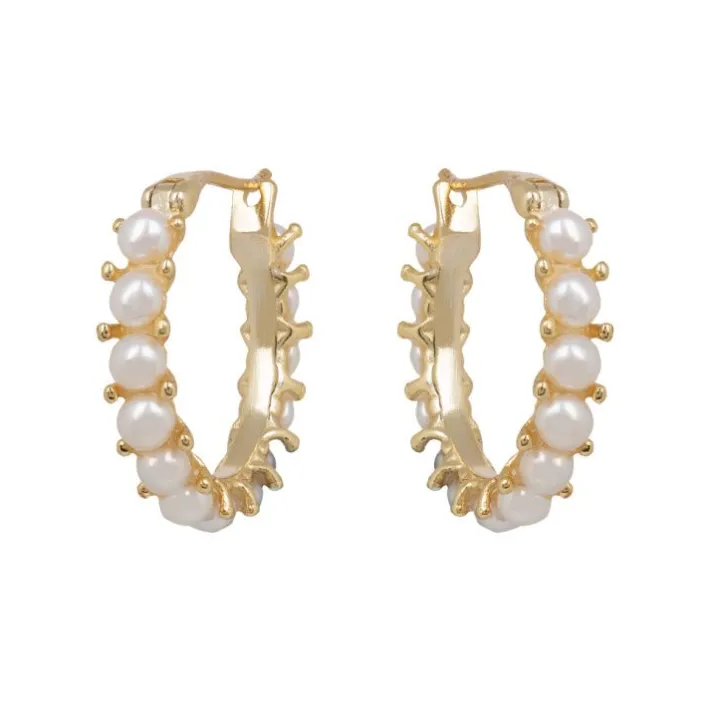 Made Of Gold Plated 925 Silver And Delicately Inlaid With White Pearls, These Earrings Make A Statement Whilst Also Being Classic.